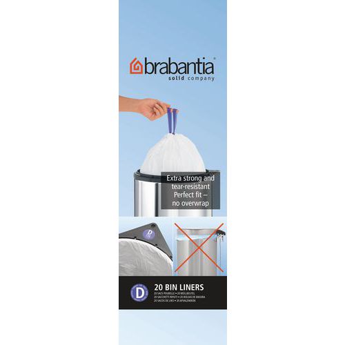 | Tavaranimike | Jätepussit 15-20 L (D) Brabantia, Tilavuus: 20 L, Paksuus: 25 µm, Korkeus: 46 cm, Jätteiden lajittelu |