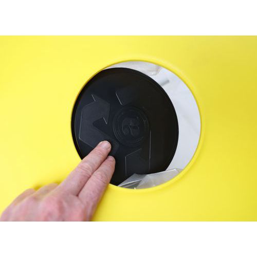Kannessa on lisäpyöreä syöttöaukko/painoläppä.
