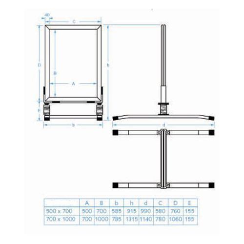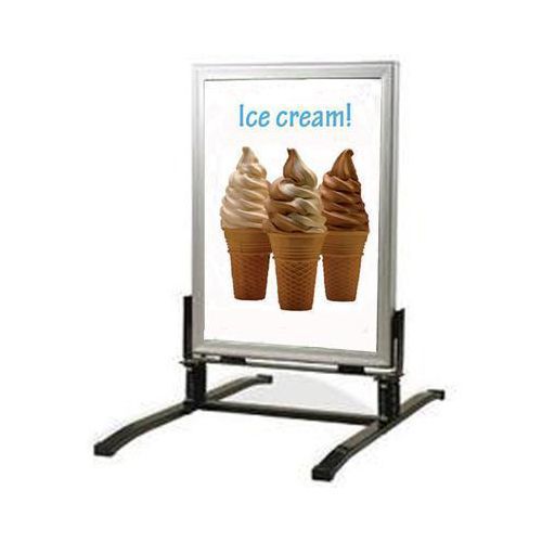 Kaksipuolinen teline, jossa erikoisvahva taustalevy. Kestää hyvin iskuja ja kovempaa käsittelyä. Teline kestää jopa 20 m/s:n tuulta ja palautuu normaaliasentoonsa tuulenpuuskan jälkeen. Kehys maalattua alumiinia. Jousitetut jalat mustaksi maalattua teräsputkea. Sisältää suojamuovin.