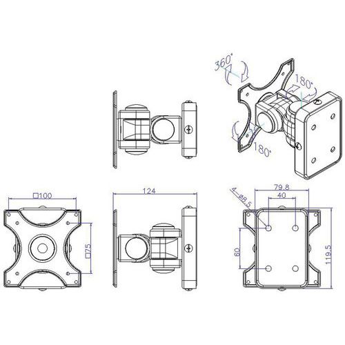 | Tavaranimike | Käännettävä näytön seinäteline, Maks kuormitus: 15 kg, Kiinnitystyyppi: Seinä, Väri: Musta |
