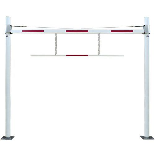 Korkeusrajoitin, suurin sallittu ajokorkeus 2,8 m. Jännitysvaijeri ja integroitu istumissuoja. Lukittavissa riippulukolla. Valmistettu Saksassa Takuu (vuosia) : 3 vuotta