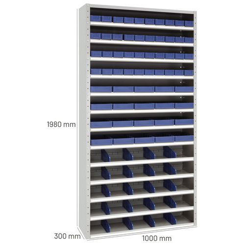 | Tavaranimike | Kaapit lokeroilla ja laatikoilla 198 x 100 x 30 cm, Materiaali: Teräs, Kokonaiskorkeus: 1980 mm |
