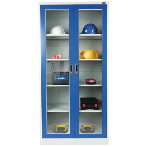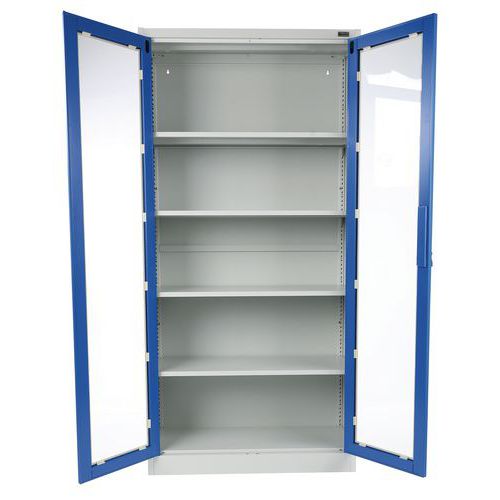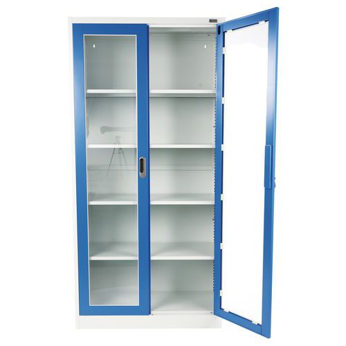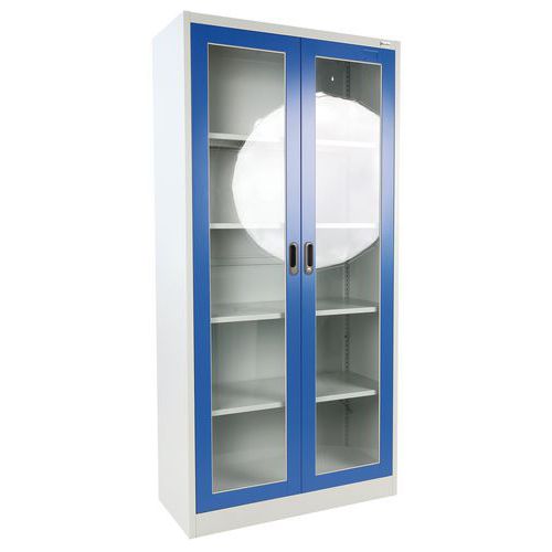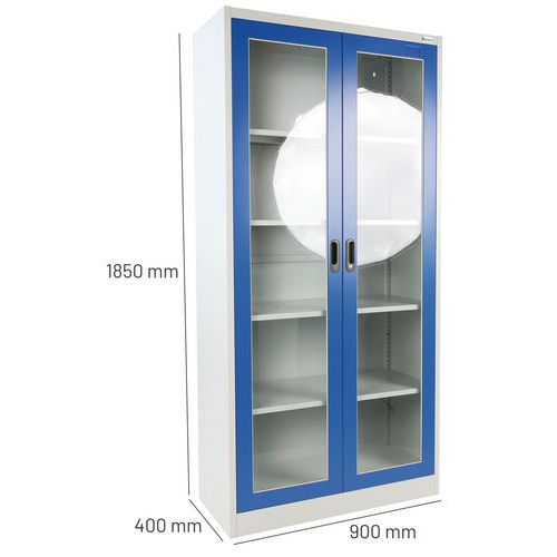 | Tavaranimike | Kaappi läpinäkyvällä ovella 4 hyllyä, Maks kuormitus: 200 kg, Materiaali: Teräs, Kokonaiskorkeus: 1850 mm |