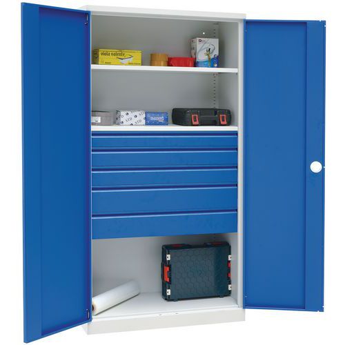 | Tavaranimike | Kaappi Magic korkea, Maks kuormitus: 250 kg, Materiaali: Teräs, Kokonaiskorkeus: 1950 mm, Lkm, laatikot: 5 |