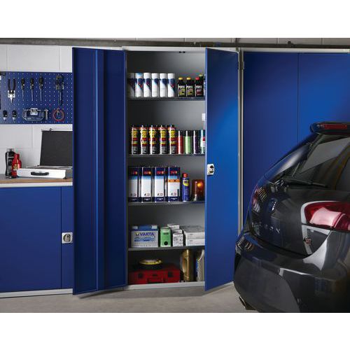 Hitsattu teräslevyrakenne. Vahvistetut ovet kolmipistelukituksella. Tuuletetut ovet takaavat hyvän ilmanvaihdon ja sisällön näkyvyyden. Tehty UK Maks kuormitus (kg) : 1000 Maks paino/hyllytaso (kg) : 75