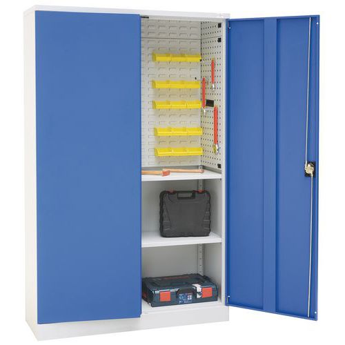 - Korkea kaappi, jossa työkalupaneelit yläosassa ja kaksi hyllyä. Kaksi kaksipistelukolla varustettua ovea tavaroiden turvalliseen säilytykseen. Iskunvaimentimella varustetut ovet sulkeutuvat hiljaisesti. Helppo koota ilman erikoistyökaluja. Soveltuu ihanteellisesti työkalujen ja materiaalin säilytykseen.