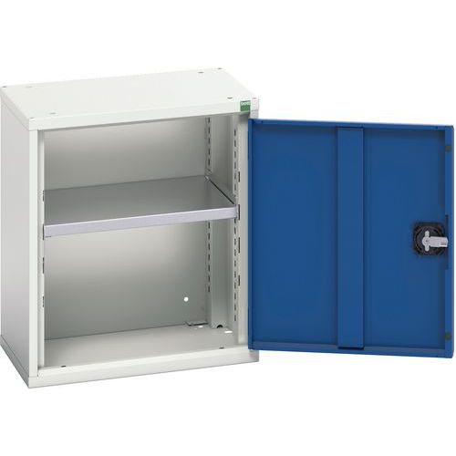 3-pisteinen kruunupulttisalpa (pariovet 800 ja 1050 mm leveät, yksiovi 525 mm leveä). Hyllyt galvanoitua terästä, säädettävät 25 mm:n välein, 60 kg:n kuorma. Syvyys 350 mm. Valmistettu Isossa-Britanniassa Maks paino/hyllytaso (kg) : 75 Maks kuormitus (kg) : 1000