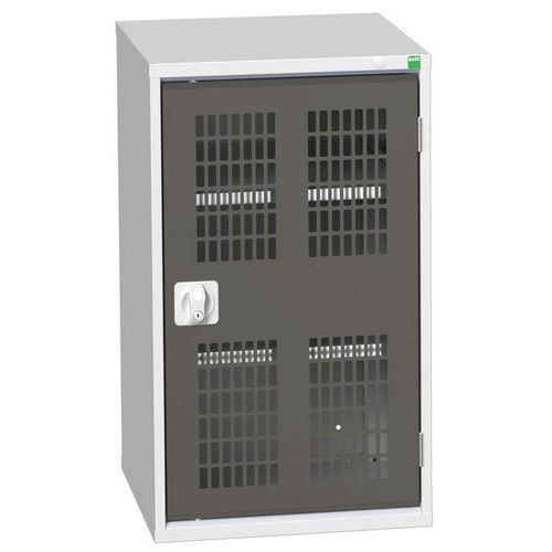 Hitsattu teräslevyrakenne. Vahvistetut ovet, joissa 3-pistelukituksella. Tuuletetut ovet takaavat hyvän ilmanvaihdon ja sisällön yleiskuvan. Sinkitystä teräksestä valmistetut hyllyt, säädettävissä 25 mm:n välein. Kantavuus 60 kg hyllyä kohden. Turvallisuusohjeet: - asenna huonekalu tasaiselle alustalle - kiinnitä se seinään tai väliseinään sopivilla kiinnikkeillä - varo ylittämästä suositeltua enimmäiskuormaa ja varmista, että kuorma jakautuu tasaisesti. Tehty UK Maks kuormitus (kg) : 1000 Maks paino/hyllytaso (kg) : 75