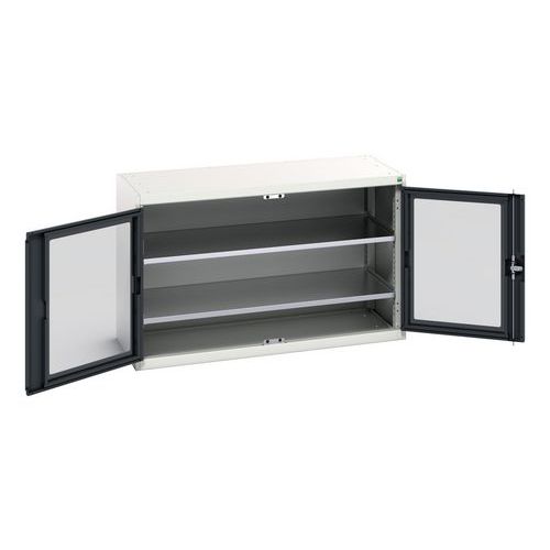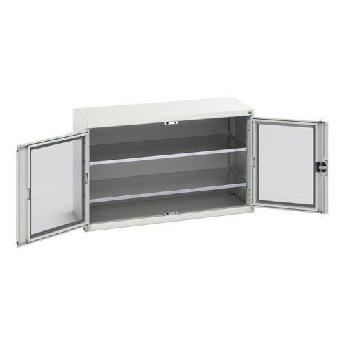 Verso-kaappi läpinäkyvillä ovilla. 2 hyllyä. PxLxK: 1300x550x800 mm. RAL 7035.