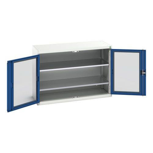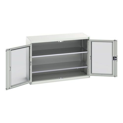 Verso-kaappi läpinäkyvillä ovilla. Kaksi hyllyä. 1300x550x900. Valmistettu Isossa-Britanniassa Maks kuormitus (kg) : 1000 Maks paino/hyllytaso (kg) : 75