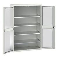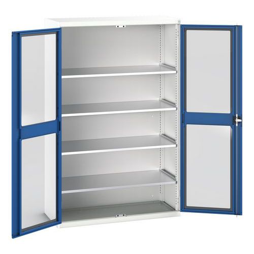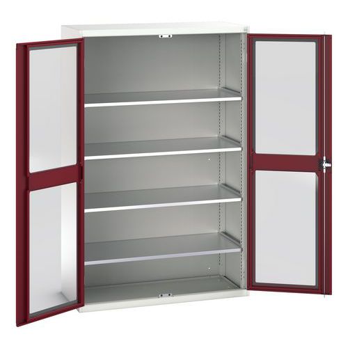 Verso-kaappi läpinäkyvillä ovilla. Neljällä hyllyllä. 1300x550x2000. Valmistettu Isossa-Britanniassa Maks kuormitus (kg) : 1000 Maks paino/hyllytaso (kg) : 75