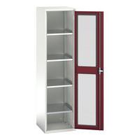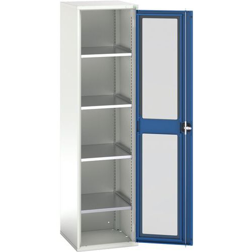 Verso-kaappi läpinäkyvillä ovilla. Neljällä hyllyllä. 525x550x2000. Valmistettu Isossa-Britanniassa Maks kuormitus (kg) : 1000 Maks paino/hyllytaso (kg) : 75
