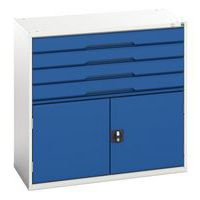 Yhdistelmäkaappi hitsatusta teräslevystä vahvikkeilla teollisuuskäyttöön. Laatikot on asennettu rullakiskoihin, jotka kestävät 60 kg:n kuormituksen. Helppo avata ja sulkea, myös täydessä kuormassa. Laatikostoissa on keskuslukitus. Syvyys 550 mm. Turvallisuusohjeet: - asenna huonekalu tasaiselle alustalle - kiinnitä se seinään tai väliseinään sopivilla kiinnikkeillä - varo ylittämästä suositeltua enimmäiskuormaa ja varmista, että kuorma jakautuu tasaisesti. Valmistettu Isossa-Britanniassa Maks paino/hyllytaso (kg) : 75 Maks kuormitus (kg) : 1000