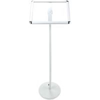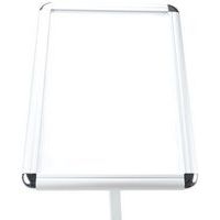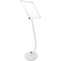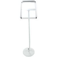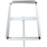 Esiteteline kaarevalla pylväällä, joka voidaan kääntää joustavaa esillepanoa varten.  Sopii hyvin vastaanottoihin, myymälöihin ja näyttelytiloihin.  Alumiinirakenne tekee telineestä vakaan ja helpon koota.         Takuu (vuosia) : 10 vuotta