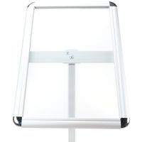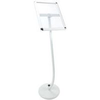 Esiteteline kaarevalla pylväällä, joka voidaan kääntää joustavaa esillepanoa varten.  Sopii hyvin vastaanottoihin, myymälöihin ja näyttelytiloihin.  Alumiinirakenne tekee telineestä vakaan ja helpon koota.