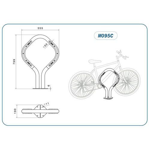 | Tavaranimike | Kaareva pyörätuki, Kokonaispituus: 560 mm, Paikkojen lkm: 2, Kokonaisleveys: 190 mm, Kokonaiskorkeus: 800 mm |