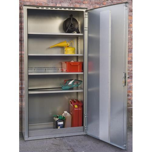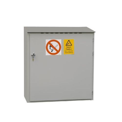 - Lukittava kaappi kaasupullojen säilytykseen. Säilytyskaappi ulkokäyttöön. Valmistettu galvanoidusta teräslevystä, joka kestää ankaria olosuhteita. Toimitukseen sisältyy pitkäsalpalukitus sylinterilukolla ja kaksi avainta. Tuuletus toimii luonnollisen vedon avulla. Kaapit on tarkoitettu kiinnitettäväksi selkälevystä. Toimitetaan koottuna. Toimitetaan ilman kalusteita