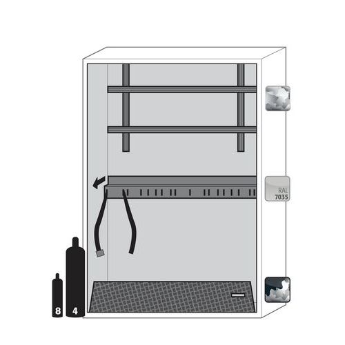 Turvallinen ja hyväksytty tulenarkojen sekä myrkyllisten kaasujen varastointi työtiloissa 1 x 50 litran kaasusylinterille.