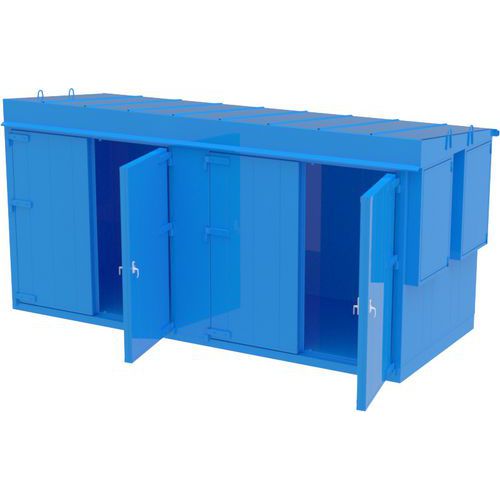 | Tavaranimike | Kaasuvarasto 614, leveys 6 metriä, Ulkokaappi EI60, Ovien määrä: 4, Kokonaisleveys: 6100 mm |