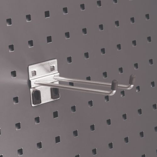 Helpottaa työkalujen ripustamista. Vankka malli, paksuus 6 mm. Muovinen turvakiinnike helpottaa tuen kiinnittämistä.