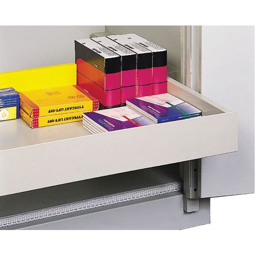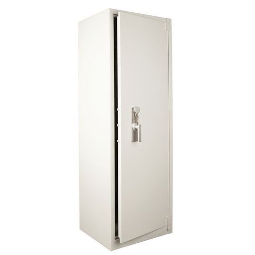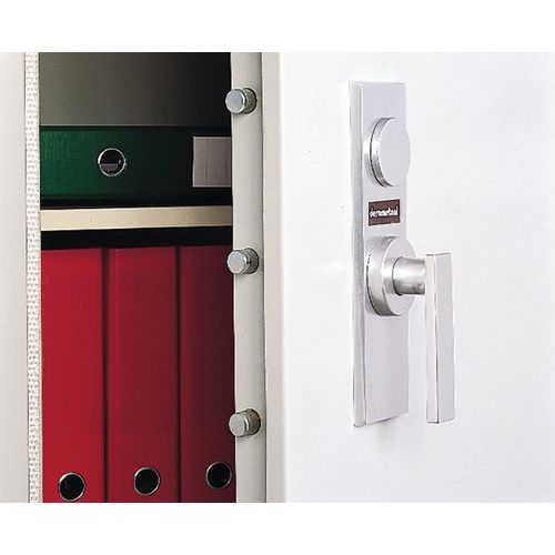 Palonkestävä ja murtosuojattu arkistokaappi. Sopii kansioiden säilytykseen. Hyllyjen korkeutta on helppo säätää. Sulje kaappi tukevasti kaksoisbittisellä avainlukolla. Tilaa erikseen ripustettava kansiojärjestelmä asiakirjojen säilyttämistä varten.