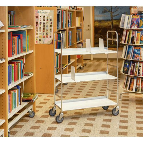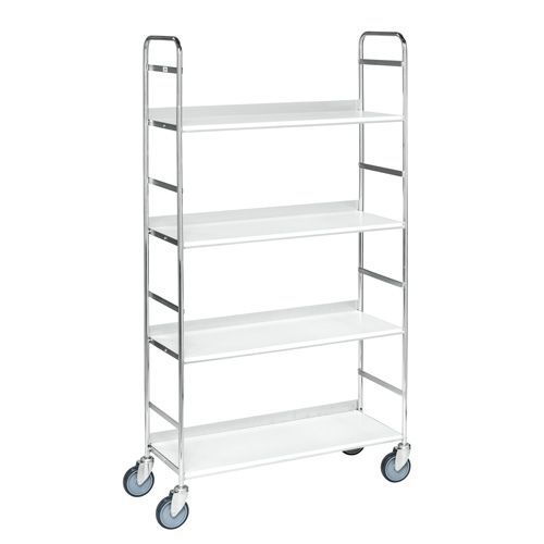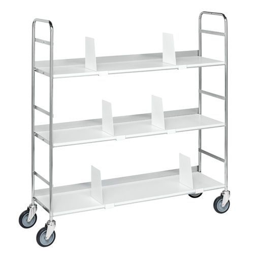Siirrettävä kansiohyllyvaunu. Sähkösinkitty, laminaattihylly. Täysin hitsattu. Sisältää 6 kirjatukea. Valmistettu EU:ssa Maks kuormitus (kg) : 100