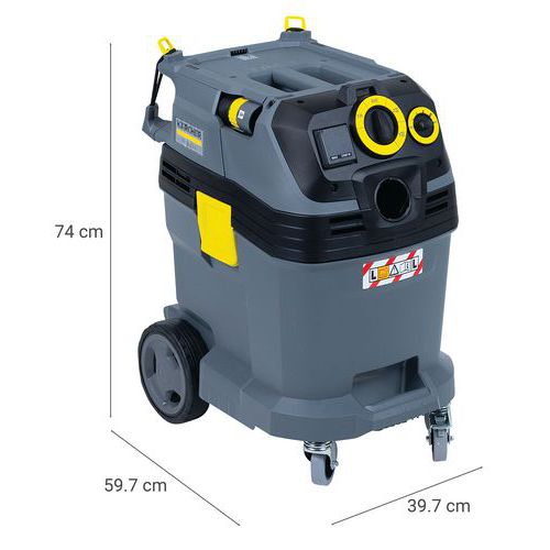 Märkä- ja kuivaimuri, jossa on automaattinen suodattimen puhdistusjärjestelmä. Integroitu poistoletku helpottaa tyhjennystä. Vaihda märkä- ja kuivakäytön välillä keskitetyn ohjauspainikkeen avulla. Varustettu sähkötyökaluliitännällä. Lattiasuulakkeet on helppo ja nopea vaihtaa. Toimitussisältö: – Imuletku, 4 m – Kuitusuodatinpussi – Märkä- ja kuivasuulake, 360 mm – Rakosuulake – Sähkötyökalujen liitäntäsovitin – Pysähtyy automaattisesti täyttyessään – Automaattinen ON/OFF-kytkin sähkötyökaluille – Antistaattinen valmistelu – Ekosuodatinjärjestelmä – Matala laskossuodatin, PES – Suodattimen tukkeutumisen esto, Tact-puhdistusjärjestelmä – Suojattu siirtämisen aikaisilta iskuilta –Suojausluokka I – Jarrullinen pyörä – Imuputki ruostumatonta terästä, 2 x 0,55 m Valmistettu EU:ssa