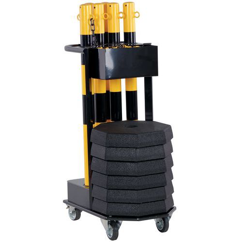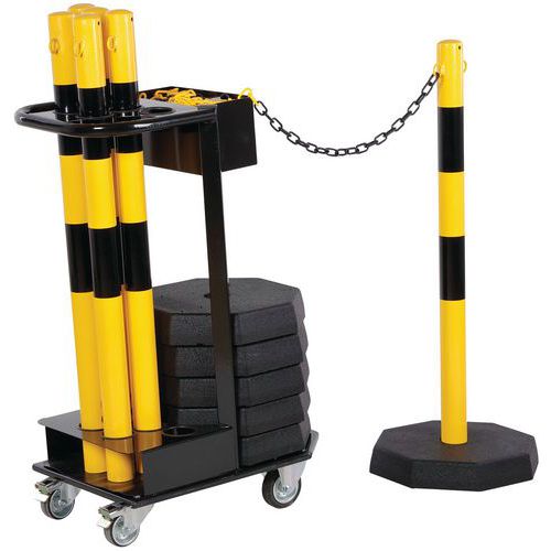 Teräskärry ja pylväät: helpottaa pylväiden kuljetusta ja varastointia. Voidaan käyttää sekä sisällä että ulkona galvanoidun teräsrakenteen ansiosta. Hyvä näkyvyys kaksisävyisen rakenteen ansiosta. Erittäin helppo asennus. TÜV-sertifikaatti.