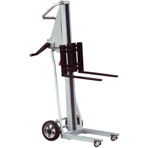 | Tavaranimike | Käsikäyttöisellä vinssillä varustettu pinoamisvaunu, Kapasiteetti: 120 kg, Nostokorkeus maks: 1050 mm |