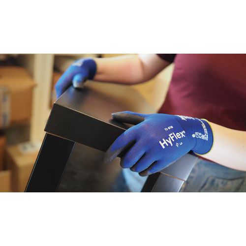 Käsineet Hyflex®11-618, Pinnoite: Polyuretaani, Tekstiilimateriaali: Nailon, Päällysteen pinta: Kämmen Käsineet Hyflex®11-618, Pinnoite: Polyuretaani, Tekstiilimateriaali: Nailon, Päällysteen pinta: Kämmen