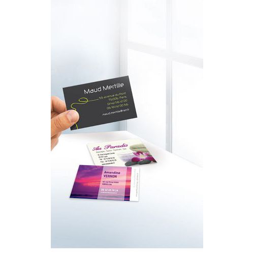 | Tavaranimike | Käyntikortit, Paino: 185 g/m², Korkeus: 54 mm, Lkm, osia: 250, Leveys: 85 mm |