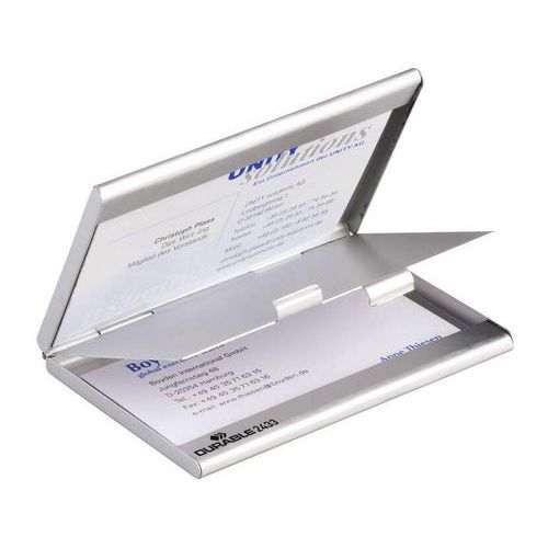 | Tavaranimike | Käyntikorttikotelo Durable Duo, Väri: Hopea, Kortti, pituus: 90 mm, Kortti, korkeus: 55 mm |