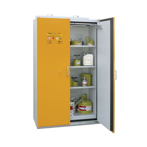 - Tulenkestävä kemikaalikaappi, SIS-FAS Tyyppi 90 (EN 14470-1 TYPE 90) ja TRbF 20L syttyvien nesteiden säilyttämiseen työpaikalla.