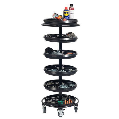 | Tavaranimike | Keräilykaruselli, 6 hyllyä, Käsinoja: ei, Pohjatyyppi: 5 jalkaa, Jalkatyyppi: Pyörät, Mali stuolit: Korkea |