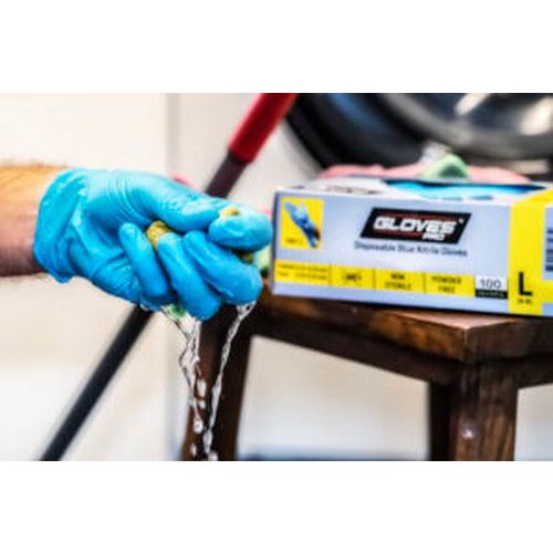- Sininen nitriilikäsine ilman puuteria, kertakäyttöön.