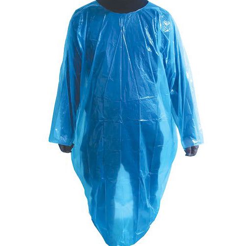 | Tavaranimike | Kertakäyttöinen sadesuoja/poncho Sininen 118x80cm 50-pakkaus., Vaatetyyppi: Esiliina, Materiaali: Polyeteeni |