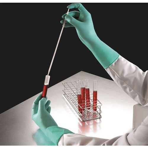 - Tarjoaa vahvan kemikaalisuojan useimpia happoja ja alkoholeja vastaan ja EN 374 Type B -kemiallisen kestävyyssertifikaatin.