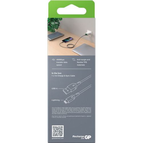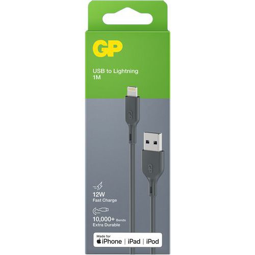 | Tavaranimike | Kestävä 1 metrin USB-A–Lightning (MFi), 12 W, USB-liitäntätyyppi: USB-A Lightning, Pituus: 1 m, Väri: Harmaa |