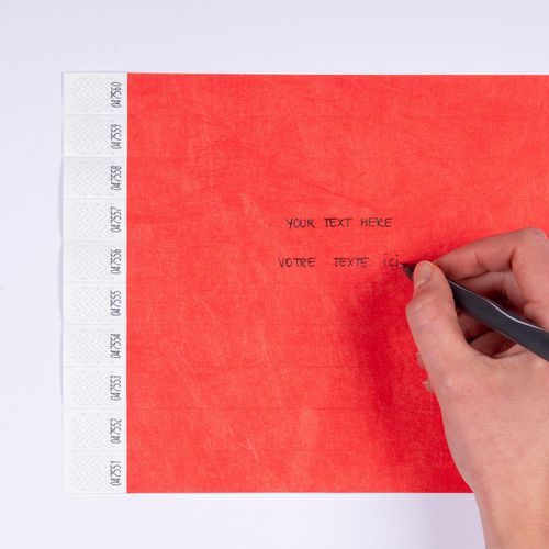 Tyvek®-rannekkeet ovat yksinkertainen ja turvallinen tapa tunnistaa osallistujat päivä- tai iltatapahtumissa. Sen kestävä, pehmeä ja repeytymätön korkeatiheyksinen polyeteenimateriaali tekee siitä välttämättömän lisävarusteen tapahtumien tunnistamiseen ja turvaamiseen. Esileikattu 10 rannekorun arkki tekee sen jakamisesta helppoa osallistujille. Siinä on turvallinen kiinnitys. Vedenkestävä.