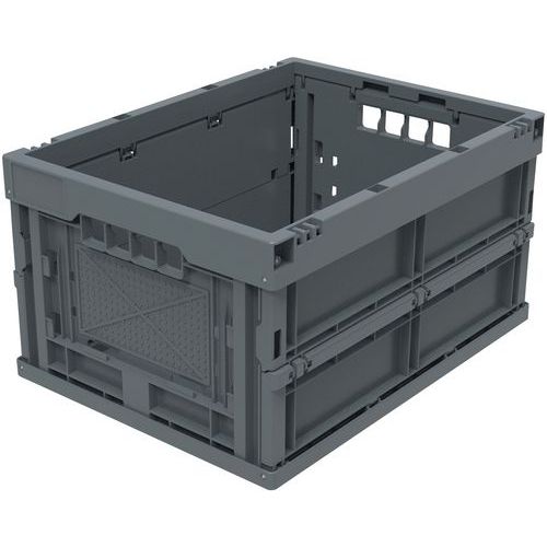 Tukeva, vahva ja pitkäikäinen kokoontaitettava laatikko, valmistettu kierrätetystä polypropeenista. Laatikon voi taittaa kätevästi kasaan joko poikittain tai pituussuunnassa. Ergonomiset, puoliavoimet kantokahvat. Varustettu vahvistetuilla saranoilla ja turvallisilla reunoilla pinoamista varten. Taloudellinen säiliöiden pienemmän tilavuuden ansiosta. Pienentää varastointi- ja kuljetuskustannuksia. Ympäristöystävällinen: valmistettu kierrätetystä ja uusiokäytetystä muovista. Optimoi varastointi- ja palautustoiminnot taitettavien kuormalavojen avulla, jotka vievät vähemmän tilaa. Nopea ja turvallinen kokoontaittaminen ja avaaminen. Etikettipidike. Ei sovellu kosketuksiin elintarvikkeiden kanssa.
