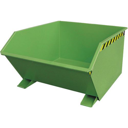 Kippisäiliö GU – Valmistettu 3 mm paksusta teräksestä – Haarukkalukitus vakiona – Automaattinen tyhjennys – Automaattinen lukitus tyhjennyksen jälkeen – Valittavana sininen, punainen, vihreä, harmaa tai oranssi. Saatavana myös täyssinkitty ja ruostumattomasta teräksestä valmistettu versio. Lisävarusteet Voidaan varustaa rengassarjalla ja sinkityllä kaksiosaisella kannella, jonka voi avata molemmilta puolilta. Maks kuormitus (kg) : 1500 kg
