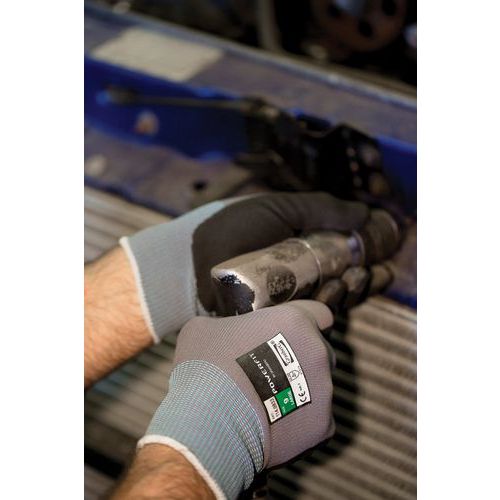 Nitriilivaahtopinnoite hylkii vettä ja öljyä, mikä antaa ylivoimaisen pidon kuivissa, märissä ja öljyisissä olosuhteissa.
