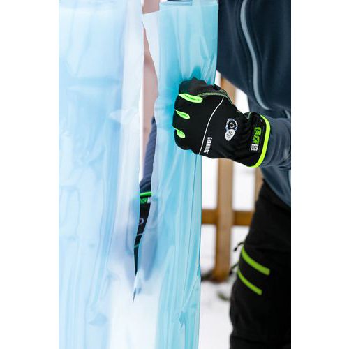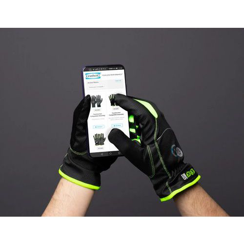 Kosketusnäyttöyhteensopivat kokoonpanohanskat EX® lämpimästi vuoratut MicroSkin Shield® -materiaalista ja polyesterisella kämmenselällä, sekä PROTEX™-kalvolla.