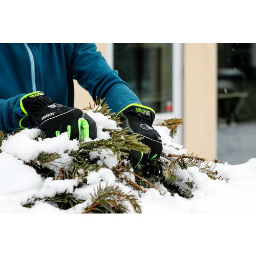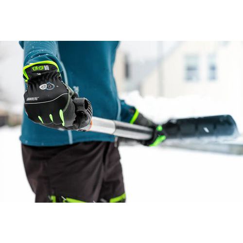 Heijastava painatus kämmenselässä lisää turvallisuutta pimeissä ympäristöissä.