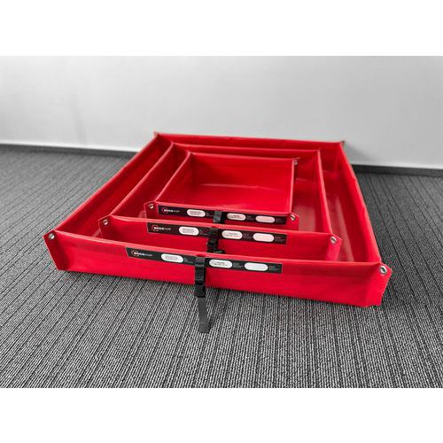 Valuma-allas on valmistettu kemikaalinkestävästä päällystetystä PES/PVC-kankaasta, ja se soveltuu eri vaarallisten nesteiden, kuten happojen, emäksisten aineiden ja öljytuotteiden keräämiseen.