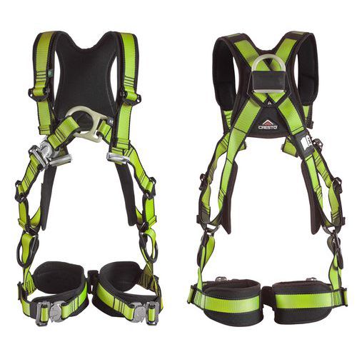 Sivulle sijoitettu D‑rengasratkaisu mahdollistaa tukityöskentelyn ilman vyötä, mikä tekee valjaista erityisen miellyttävät pidempikestoisiin työtehtäviin.