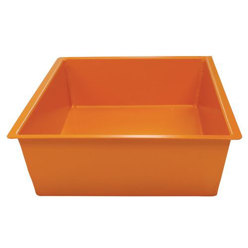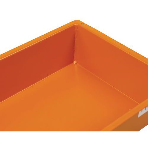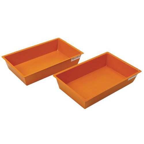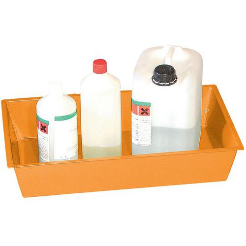 Roiskeiden ja vuotojen rajaamiseen tynnyreistä ja kanistereista. Valmistettu jauhemaalatusta 1,5 mm levystä. Soveltuu erinomaisesti myös akkujen alle. Kestää korroosiota ja useimpia kemikaaleja, kuten öljyjä, liuottimia, happoja ja emäksiä