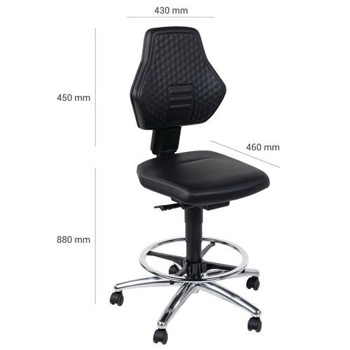 | Tavaranimike | Korkea keinonahkainen istuin lukittuvilla pyörillä, Istuin, materiaali: Keinonahka, Selkänoja: kyllä |