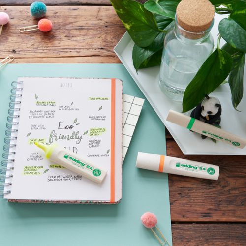 - Ympäristöystävällinen korostuskynä, valmistettu 83 % uudelleenkäytetystä ja 90 % kierrätetystä muovista.
