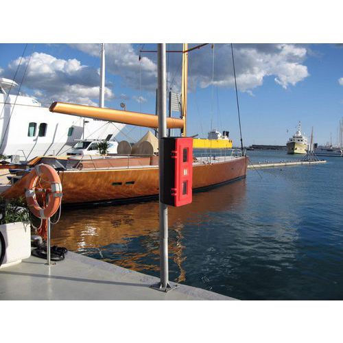 Kaappi kahdelle enintään 12 kg painavalle sammuttimelle, vahvistettu hihna. Oven avaussuunta voidaan vaihtaa (voidaan kiinnittää oikealle tai vasemmalle). Laadukas kumieriste. Polykarbonaatti-ikkunat, jotka estävät UV-säteet. Lukitustappi, saranat ja kiinnikkeet muovia. Valmistettu Isossa-Britanniassa
